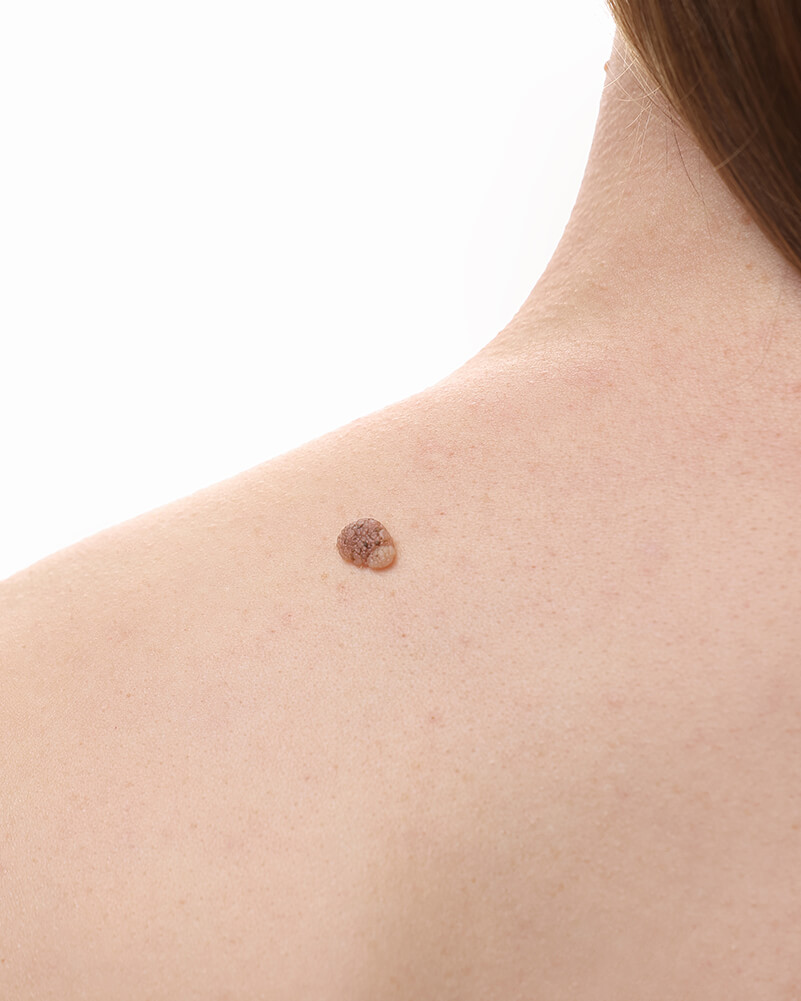 SKs are flat or only slightly raised, tan, black or brown growths with a rough texture that looks “pasted on” the face, chest, shoulders and back. They may itch. Picking at them can cause bleeding, swelling and infection. While the etiology of SKs is not definitively known, sunlight exposure is a commonly associated risk factor.